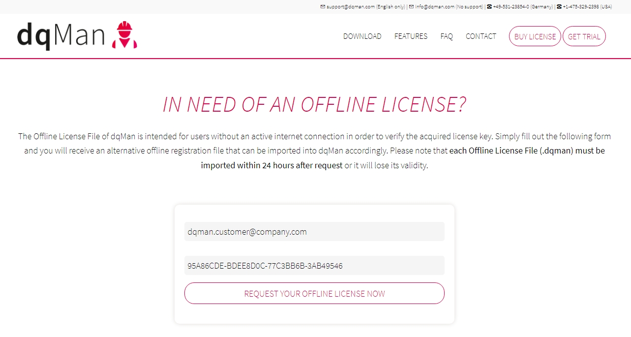 You will receive an email shortly with a dqMan offline license file (*.dqman file) attached