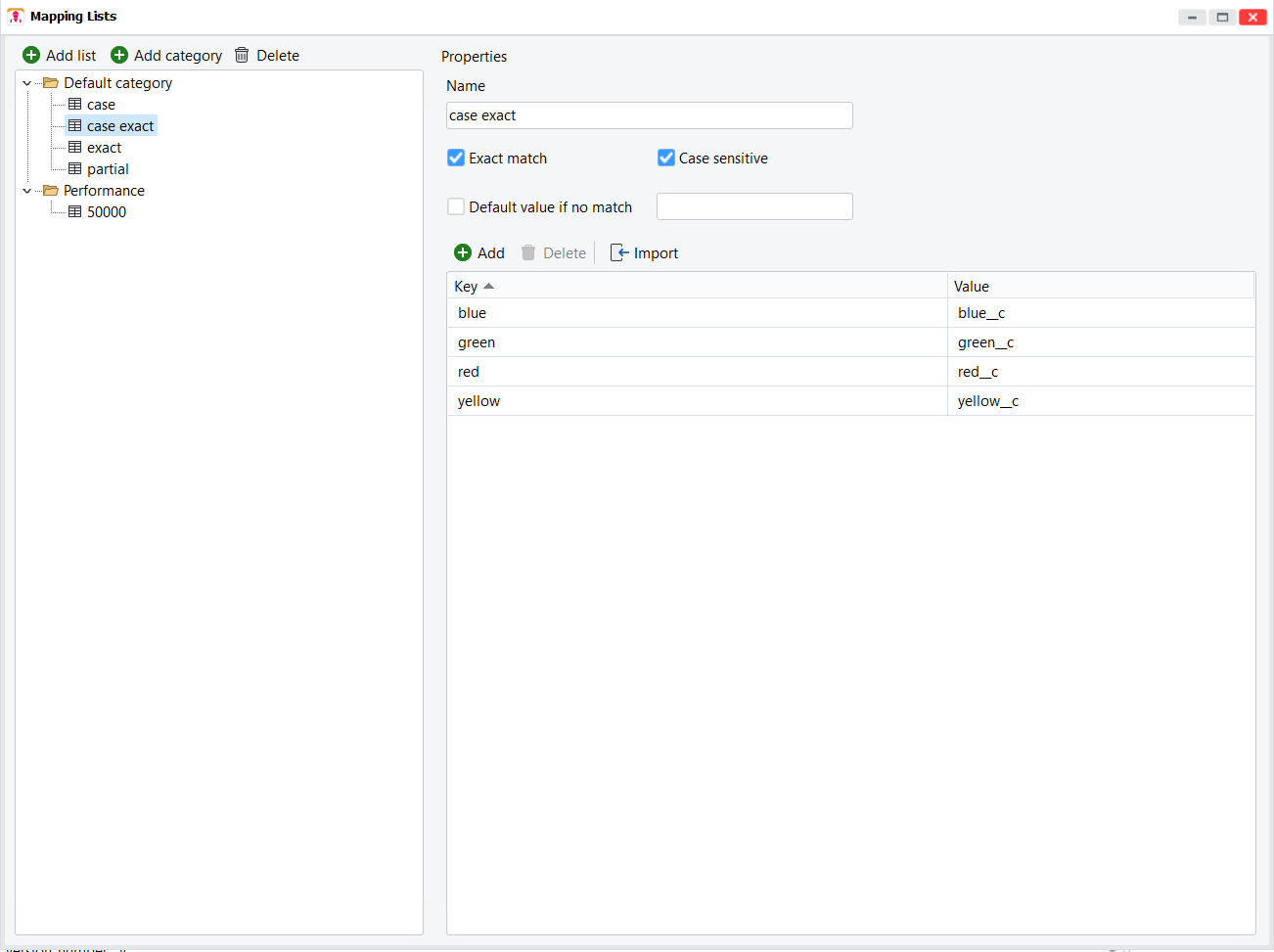 A **Mapping List** is a collection of *key* - *value* pairs that can be used in Compare Data using the **Compare Tool**.