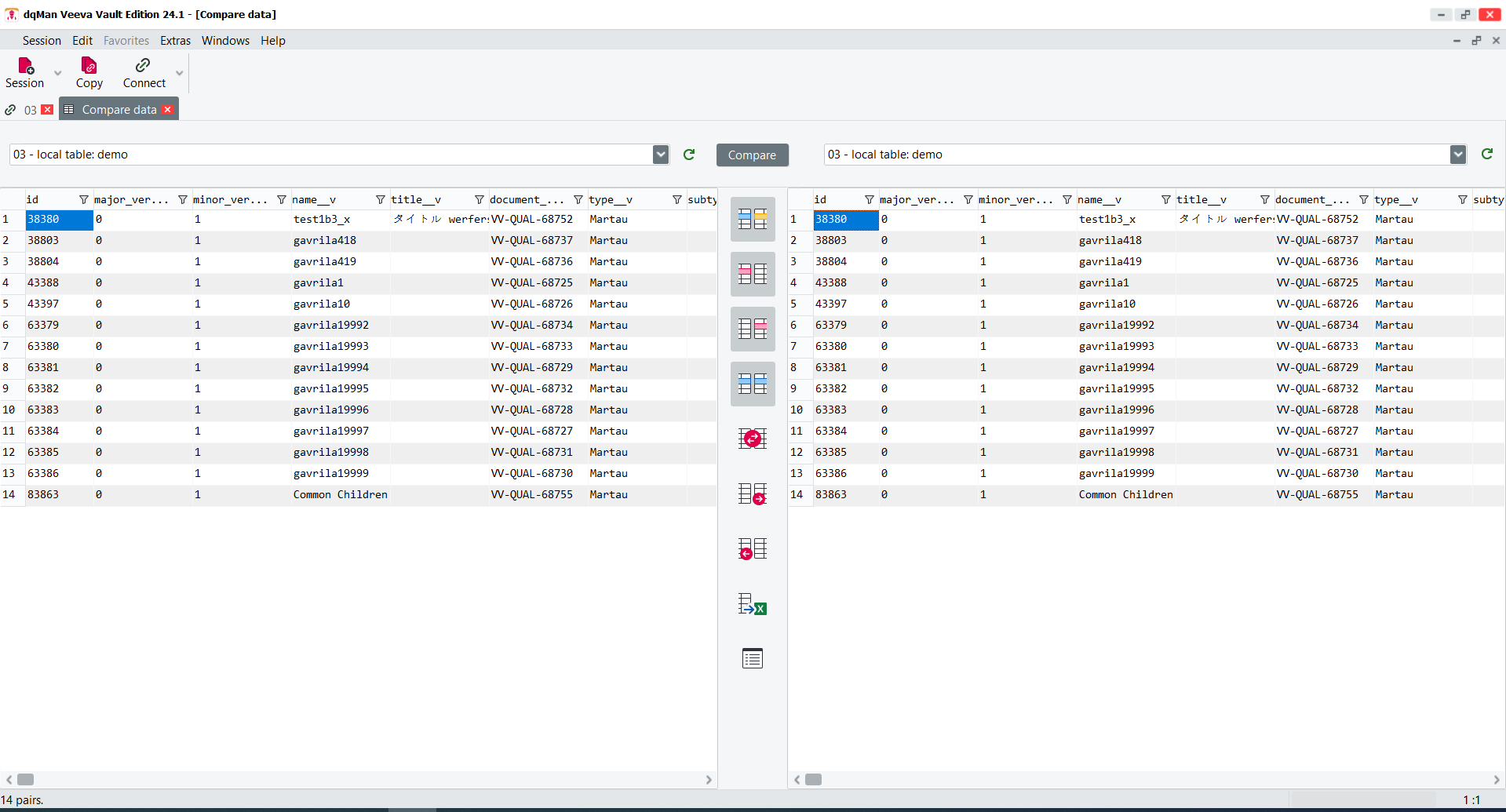 The Comparison Tool is a feature-rich utility designed to compare data from different sources, such as VQL query results, imported data lists, or clipboard data. This tool provides flexible options for comparing only the rows that differ between datasets, and it supports various combinations of comparison criteria.