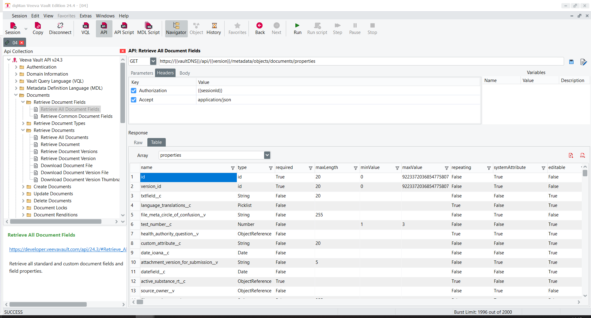 The API window in dqMan allows users to execute and test API calls to Veeva Vault. It provides a visual interface for managing requests and responses, making it easier to test and debug API calls.