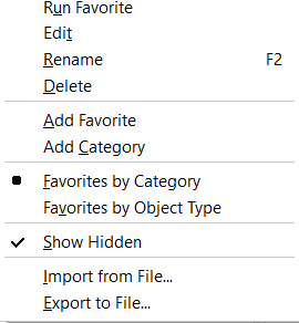 Export to File: Allows you to export the selected favorite or category to a file.